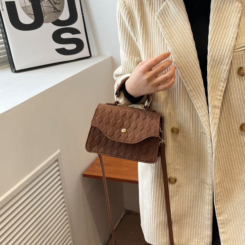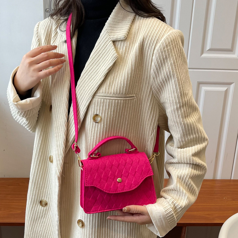 Solid color felt small square bag 2022 Korean fashion bag Women's simple handbag Texture fashion casual shoulder bag
