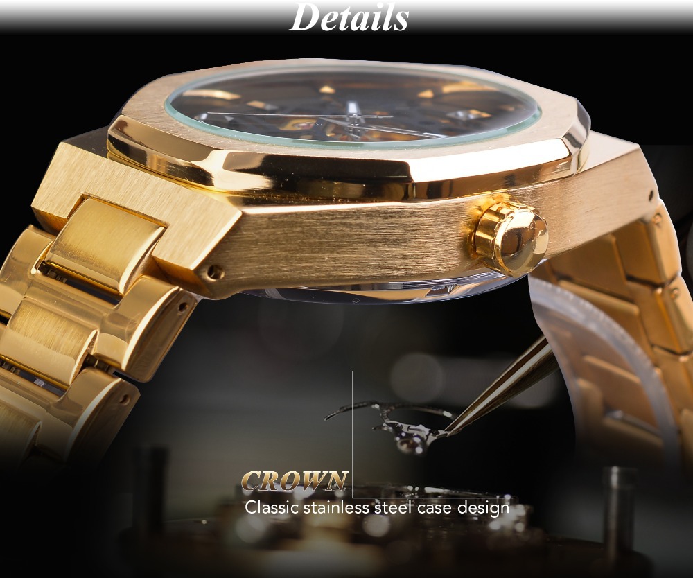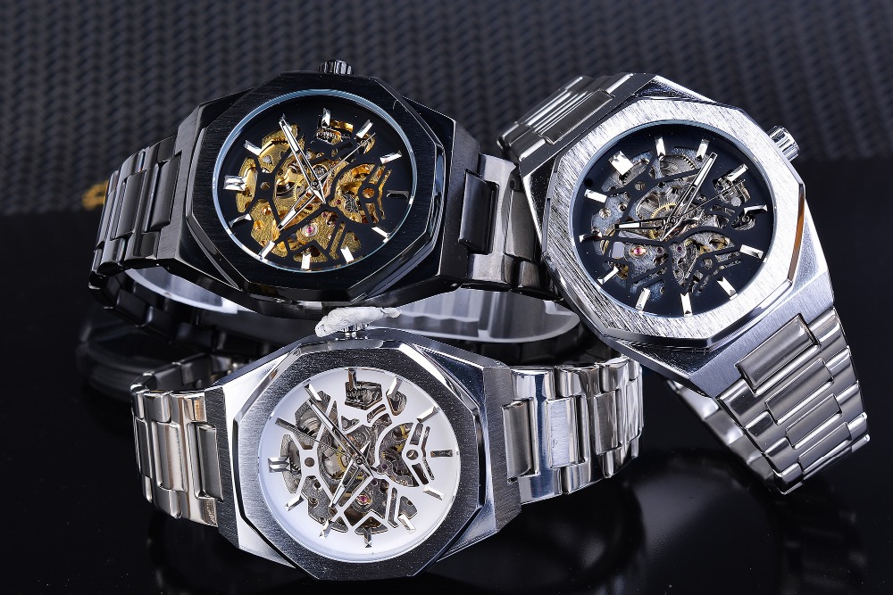 Forsining, a men's 30m waterproof automatic mechanical watch, hollow steel band, men's watch, luminous needle