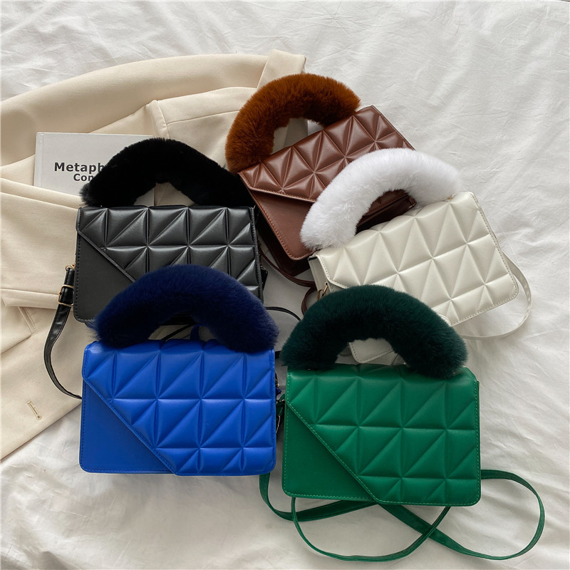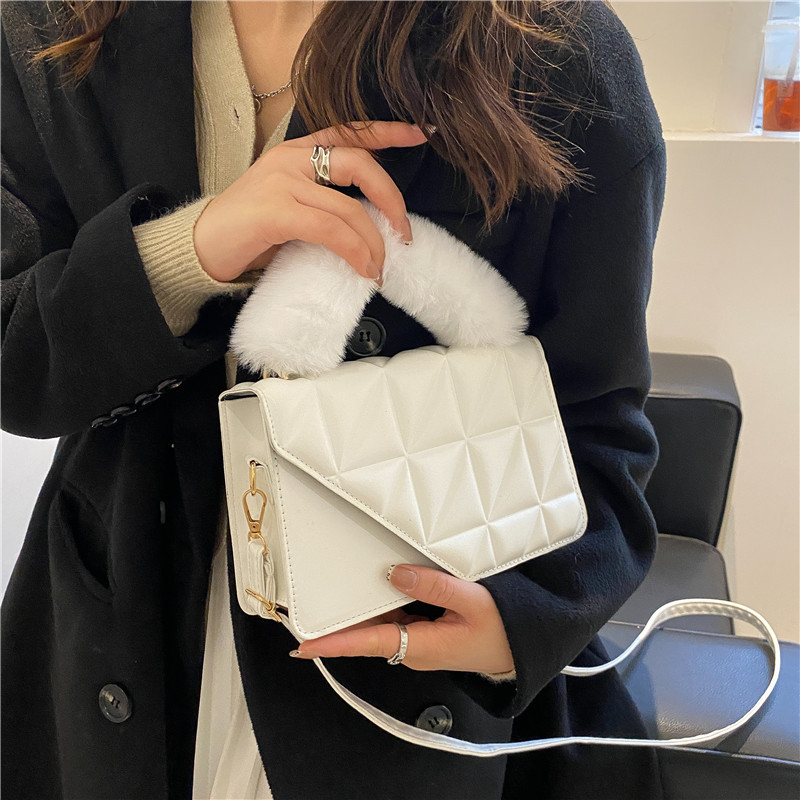 Ladies bag popular texture rhombic lattice Plush handbag 2022 Korean version foreign style one shoulder messenger small square bag