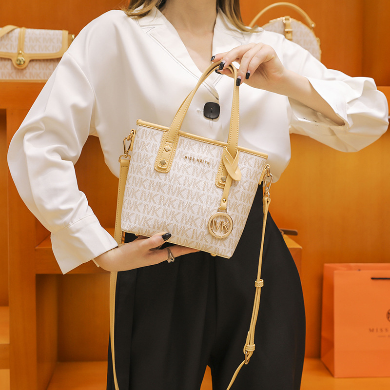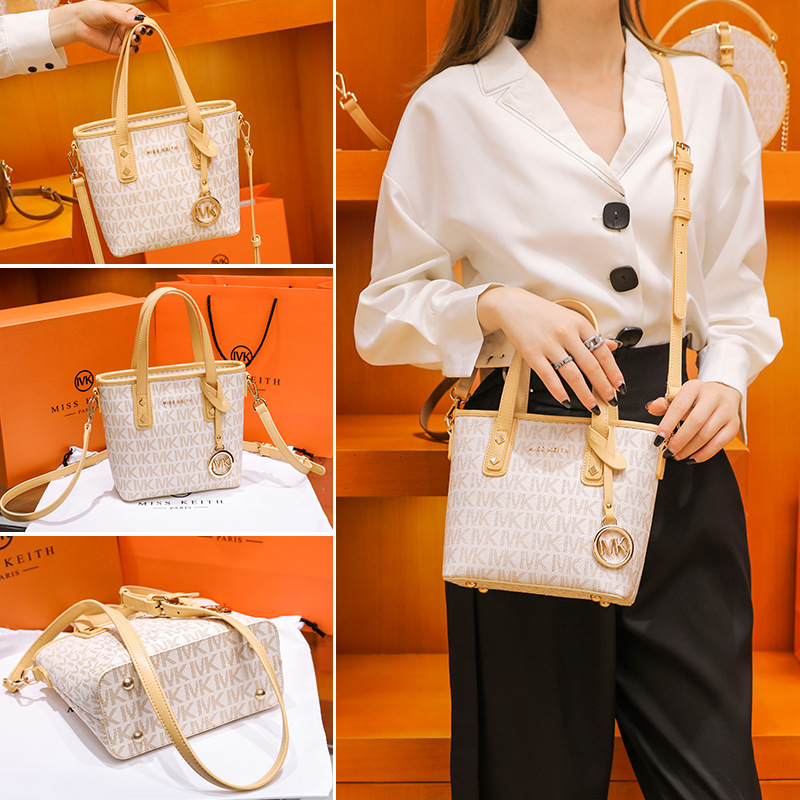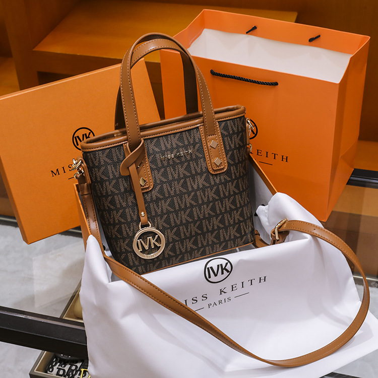 MK Small Bag 2021 New Fashion Old Flower Retro Bucket Bag Portable Leather Women's Bag Single Shoulder Oblique Straddle Women's Bag