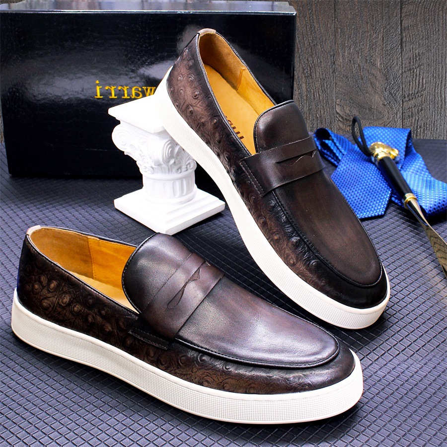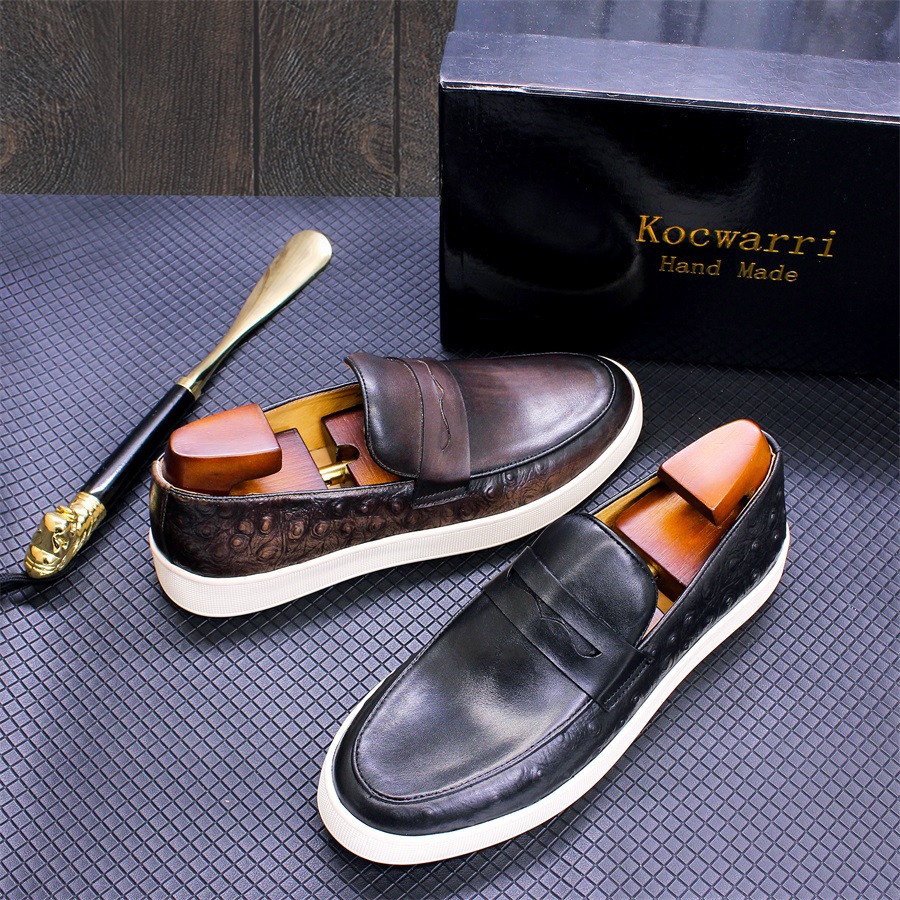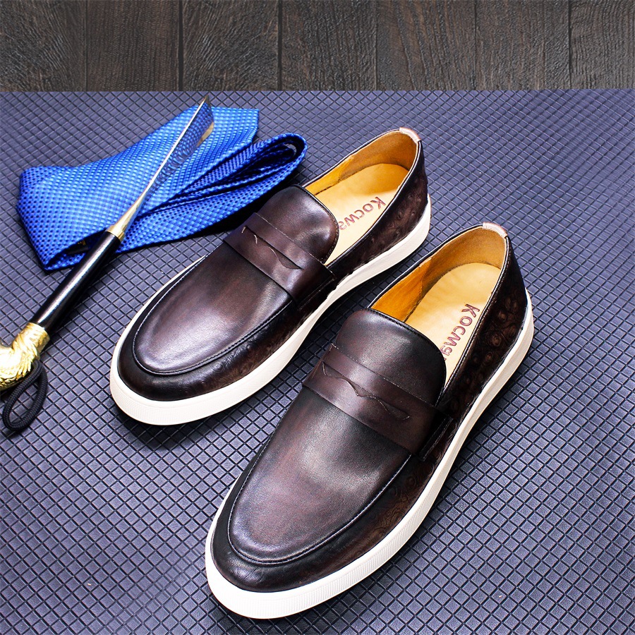 Men's casual leather shoes burst leather simple flat shoes cross-border large size men's shoes a penny loafers