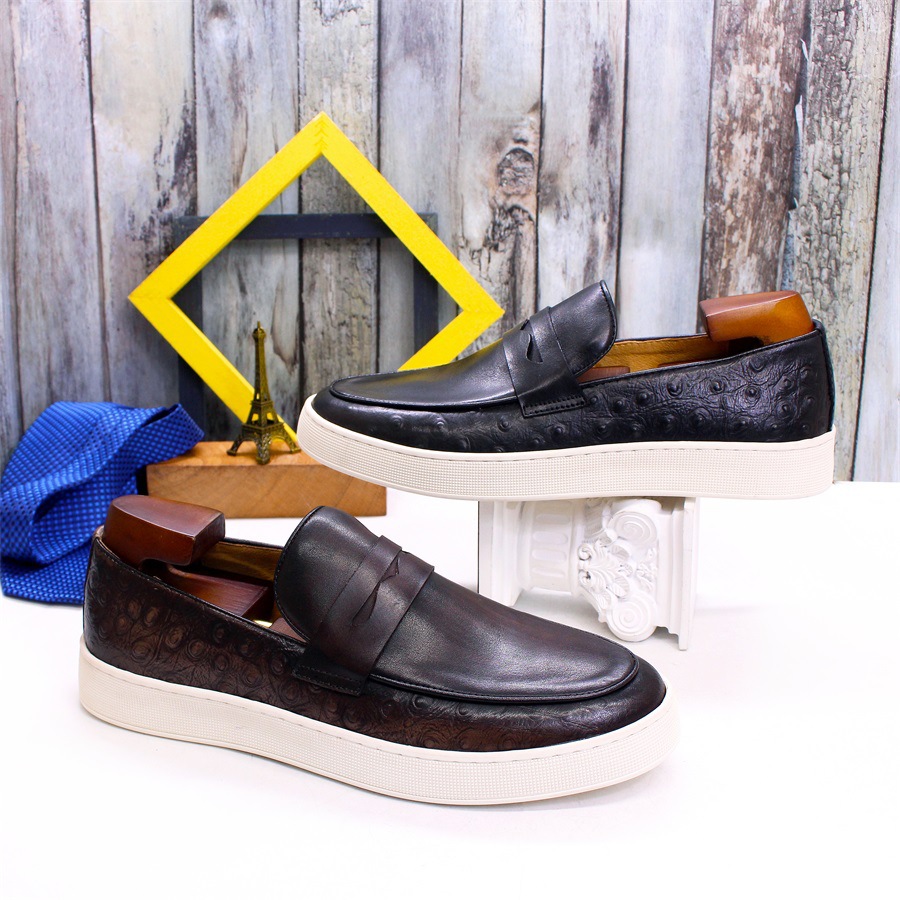 Men's casual leather shoes burst leather simple flat shoes cross-border large size men's shoes a penny loafers