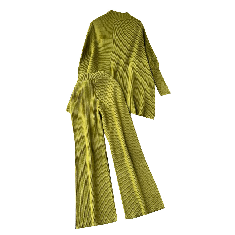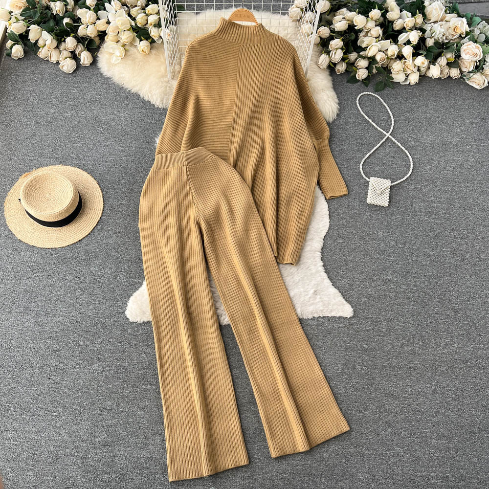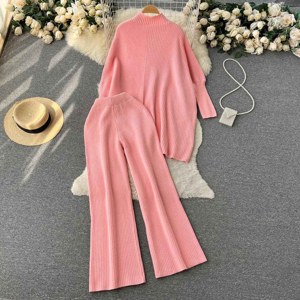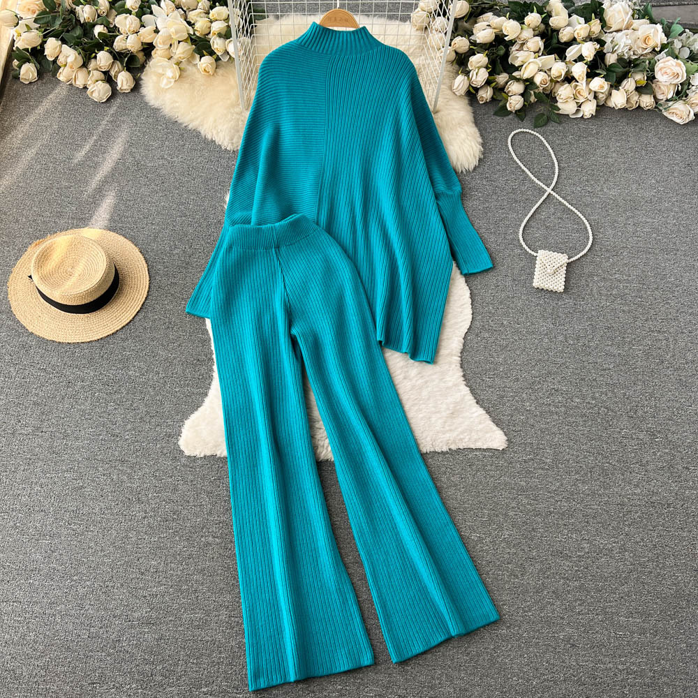 Autumn and winter new irregular lazy loose long-sleeved half-turtleneck + elastic waist hanging wide-leg pants two-piece set
