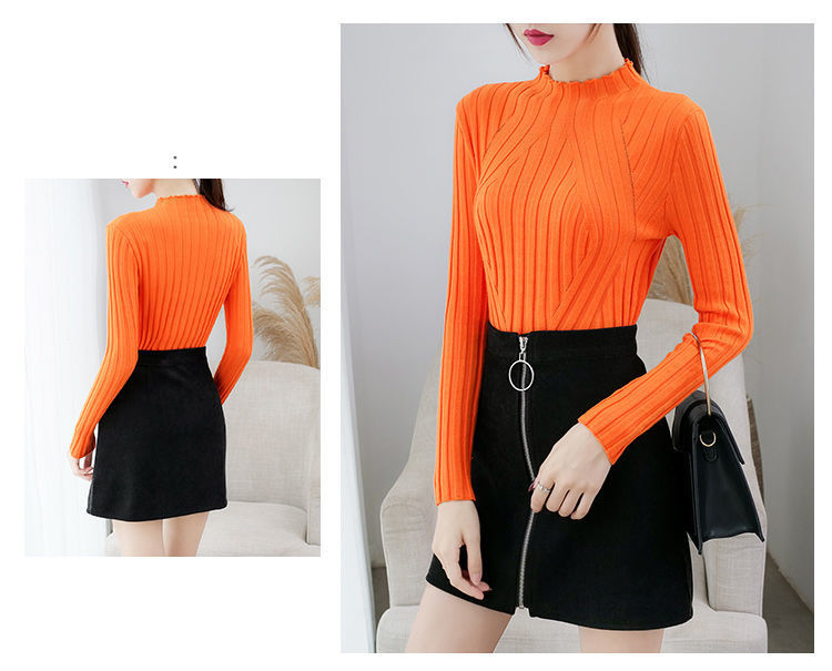 Solid color half high neck knitted bottoming shirt long sleeved top autumn and winter new tight and thin pit sweater for women